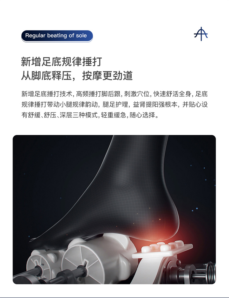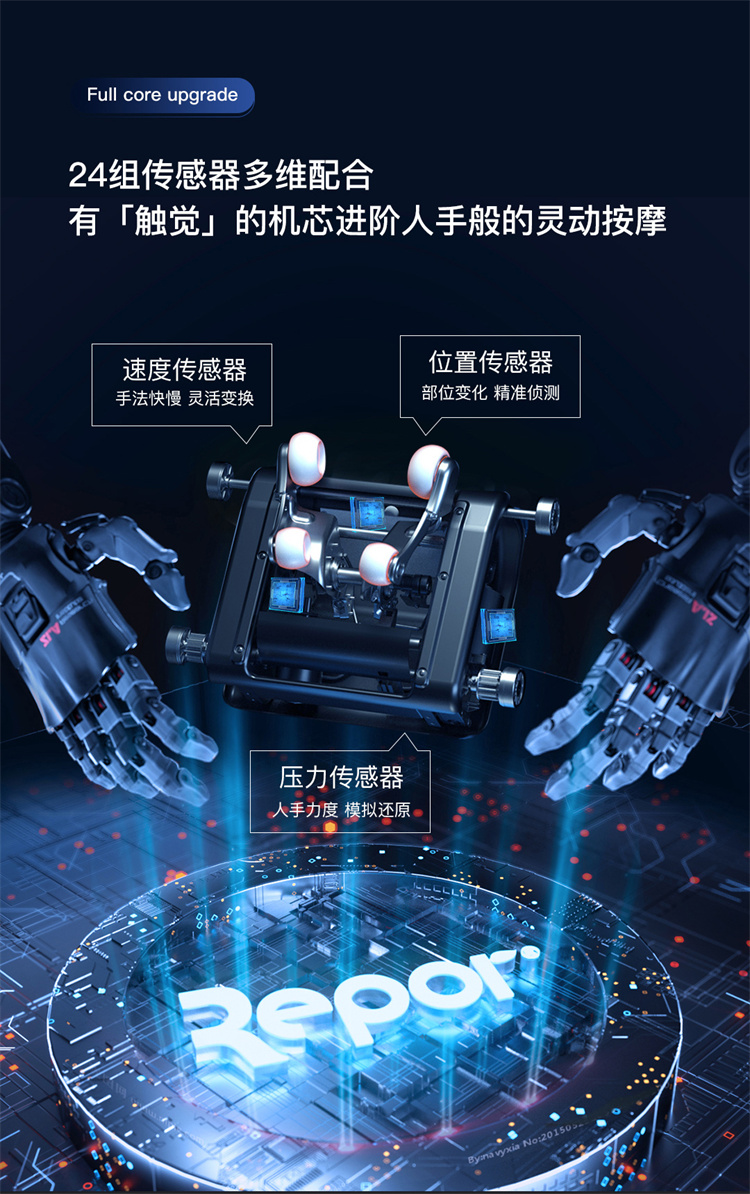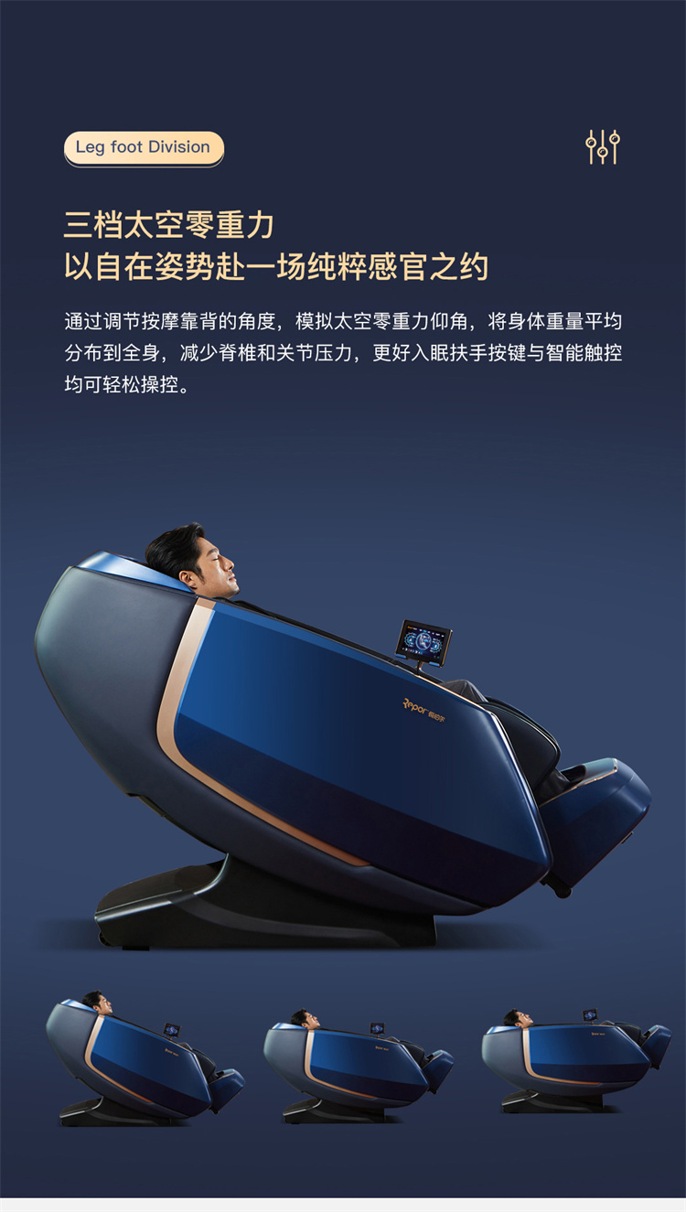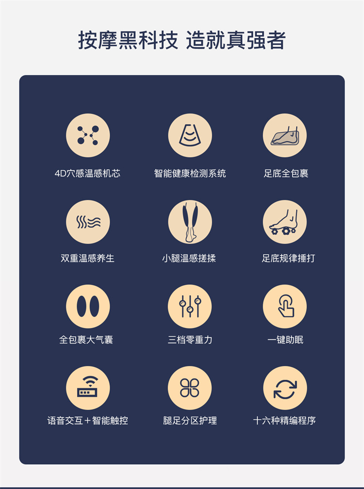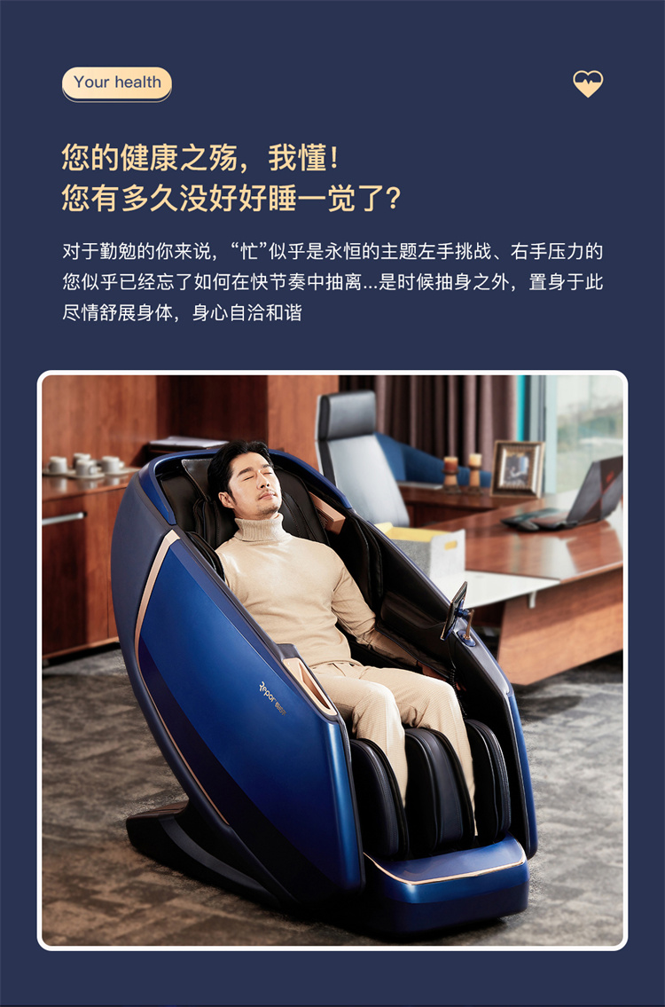 銳珀爾集十余年技術(shù)積累,傾力打造銳珀爾新款按摩椅4D穴感總裁椅,擁有全新的AI智能語音,小腿溫?zé)崛啻?、腳底震動、4D機械手等全新功能創(chuàng)新,智能健康體測,可以檢測血氧、心率、微循環(huán)等數(shù)值,通過大數(shù)據(jù)分析,給您提供合理的改善方法,時刻關(guān)注您的健康狀況;超大液晶智能觸控,專為總裁量身打造的特色按摩程序,20分鐘快速補充精力,多種按摩程序,滿足全家人的需求。