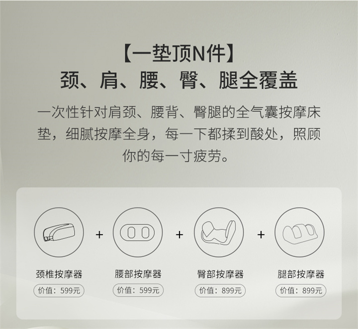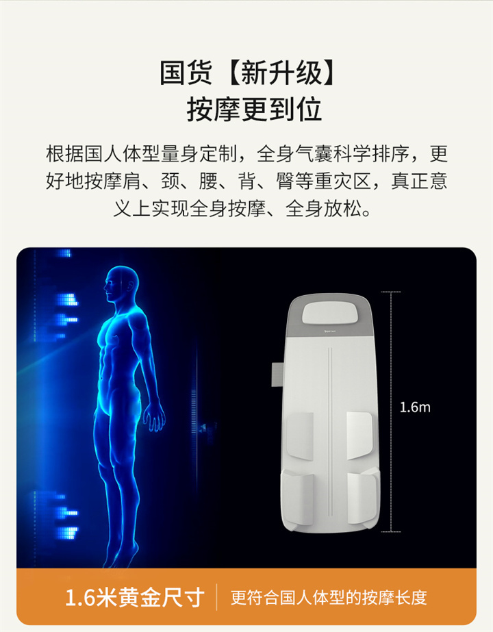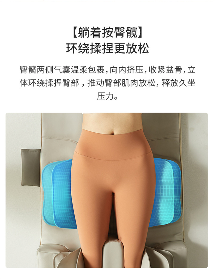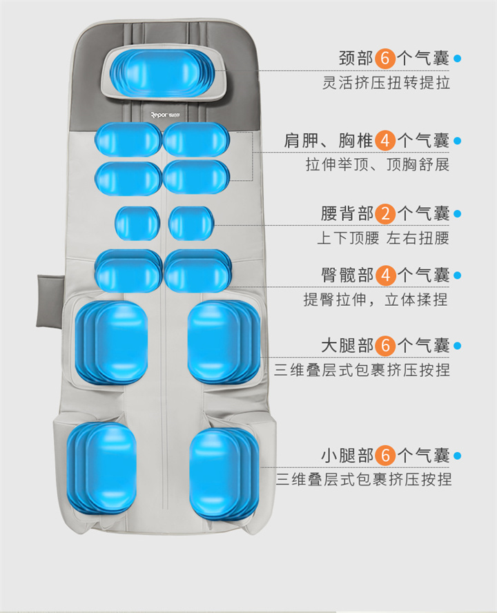 銳珀?duì)栔悄軞饽野茨Υ矇|SR-U5 Pro,讓您在家悠悠一躺,實(shí)現(xiàn)全身按摩,采用氣囊揉捏,實(shí)現(xiàn)分區(qū)按摩,腰背拉伸、肩頸夾揉等功能,歡迎您體驗(yàn)。